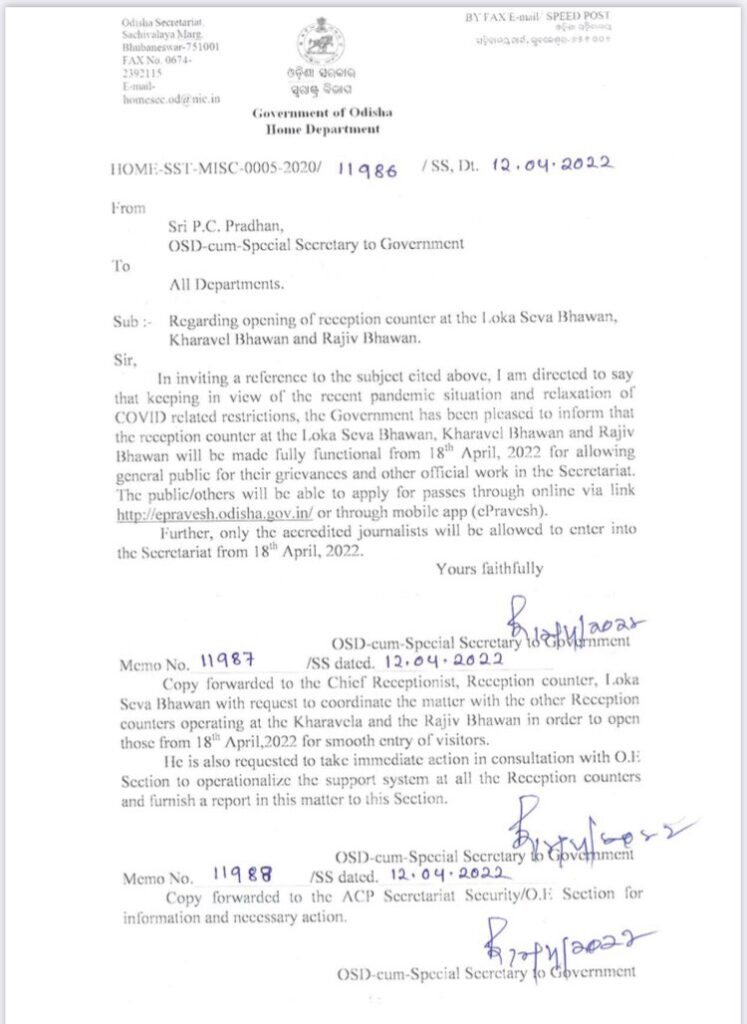 କରୋନା ଯୋଗୁଁ ପ୍ରାୟ ଦୁଇ ବର୍ଷ ହେବ କରୋନା ପାଇଁ ଲୋକସେବା ଭବନକୁ ଯିବାରେ ରାଜ୍ୟ ସରକାର କଟକଣା ଲାଗୁ କରିଥିଲେ ।ଏପରିକି ସାମ୍ୱାଦିକଙ୍କ ପ୍ରବେଶ ଉପରେ ମଧ୍ୟ କଟକଣା ଲାଗୁ କରାଯାଇଥିଲା । ଯାହାକୁ ନେଇ ବିରୋଧୀ ଏବଂ ବୁଦ୍ଧିଜୀବୀଙ୍କ କଡା ସମାଲୋଚନାର ଶିକାର ହୋଇଥିଲେ ରାଜ୍ୟ ସରକାର। ଅନ୍ୟପଟେ ଏବେ କରୋନା ମାମଲା ହ୍ରାସ ହେବା ସହ ସ୍ଥିତି ପୂର୍ବାବସ୍ଥାକୁ ଫେରିବାରେ ଲାଗିଛି। ଏହାକୁ ନଜରରେ ରାଜ୍ୟ ସରକାର କଟକଣାକୁ ହଟାଇବାକୁ ନିଷ୍ପତ୍ତି ନେଇଥିବା ଜଣାପଡିଛି।