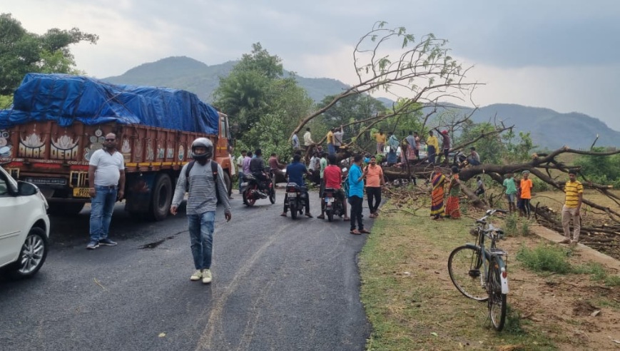ବାତ୍ୟା ପୂର୍ବରୁ ପ୍ରବଳ ବର୍ଷା ସାଙ୍ଗକୁ ପବନ ମାଡ଼ରେ ମୁଖ୍ୟ ରାସ୍ତାରେ ଏକ ଘଣ୍ଟା ଧରି ପଡିରହିଛି ଏହି ବୃକ୍ଷ । ଗଞ୍ଜାମ ଗଜପତି ସୀମାନ୍ତ ତଥା ଉଭୟ ପଟରୁ ସହ ସହ ଯାନ ବାହାନ ଗଛର ଉଭୟ ପାଖରେ ଅଟକି ରହିଛି । ହଜାର ହଜାର ଯାତ୍ରୀ ହନ୍ତ ସନ୍ତ ହେଉଥିବା ବେଳେ ଘଟଣା ସ୍ଥଳରେ ସାନଖେମୁଣ୍ଡି ଅଗ୍ନିଶମ ବିଭାଗ ପହଂଚି ରାସ୍ତାରେ ପଡିରହିଥିବା ଗଛକୁ ବାହାର କରୁବାକୁ ଚେଷ୍ଟା କରୁଛନ୍ତି । ସୂଚନା ଥାଉକି ଦୀର୍ଘ ୨ଘଣ୍ଟା ଧରି ବର୍ଷା ଉକ୍ତ ଅଂଚଳରେ ଲାଗି ରହିଥିଲା ।
