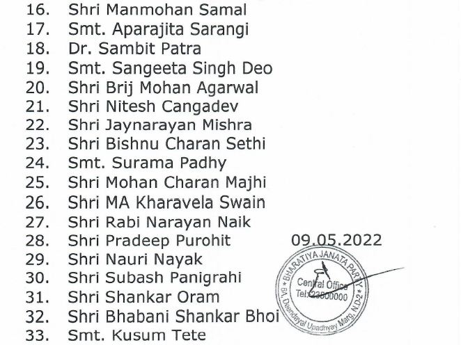 ବ୍ରଜରାଜନଗର ଉପ ନିର୍ବାଚନ ପାଇଁ ବିଜେପିର ୪୦ ଜଣିଆ ଷ୍ଟାର ପ୍ରଚାରକ ତାଲିକା ଘୋଷଣା -ସେଥିରେ ୫ କେନ୍ଦ୍ର ମନ୍ତ୍ରୀ