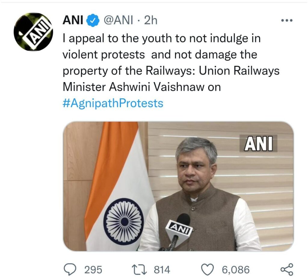 ଏହି ପ୍ରତିବାଦ ଯୋଗୁଁ ଏପର୍ଯ୍ୟନ୍ତ ୨୦୦ ରୁ ଅଧିକ ଟ୍ରେନ୍ ପ୍ରଭାବିତ ହୋଇଛି | ବୁଧବାର ଦିନ ବିରୋଧ ଆରମ୍ଭ ହେବା ପରଠାରୁ୩୫ ଟି ଟ୍ରେନ୍ ବାତିଲ କରାଯାଇଛି ବୋଲି ରେଳବାଇ କହିଛି। ଏହି ସମୟ ମଧ୍ୟରେ, ନିର୍ଦ୍ଧାରିତ ସମୟ ପୂର୍ବରୁ ୧୩ ଟି ଟ୍ରେନ୍ ରୋକି ଦେବାକୁ ପଡିଲା | ରେଳ ମନ୍ତ୍ରୀ ଅଶ୍ୱିନୀ ବୈଷ୍ଣବ ଯୁବକମାନଙ୍କୁ ରେଳ ସମ୍ପତ୍ତି ନଷ୍ଟ ନକରିବାକୁ ଅନୁରୋଧ କରିଛନ୍ତି। ସେ କହିଛନ୍ତି ଯେ ମୁଁ ଯୁବକମାନଙ୍କୁ ନିବେଦନ କରୁଛି ଯେ ହିଂସାତ୍ମକ ବିରୋଧ ପ୍ରଦର୍ଶନ ନକରିବା ଏବଂ ରେଳବାଇର ସମ୍ପତ୍ତି ନଷ୍ଟ ନକରିବା ପାଇଁ ।