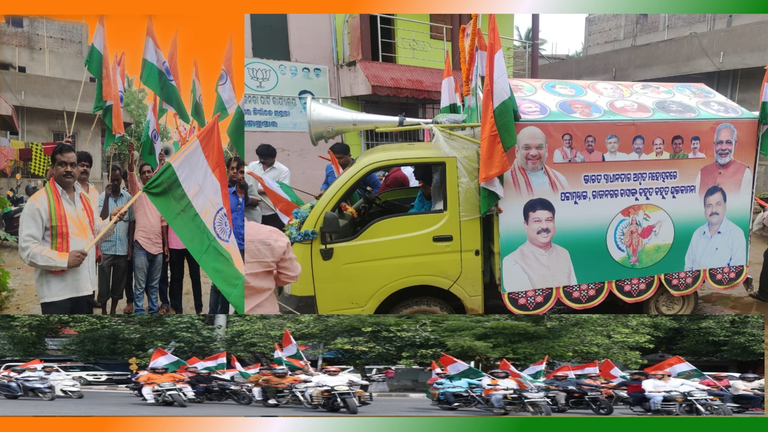 ଏହି ଅବସରରେ ପଟ୍ଟାମୁଣ୍ଡାଇ ରାଜନଗର ବିଜେପି ତରଫରୁ ପ୍ରାକ୍ତନ ବିଧାୟକ ତଥା ବିଜେପିର ବରିଷ୍ଠ ନେତା ଡ଼.ଜେନାଙ୍କ ତତ୍ୱାଭାଧାନରେ ତ୍ରିରଙ୍ଗା ରଥ ନିର୍ବାଚନ ମଣ୍ଡଳୀର ପ୍ରତ୍ୟେକ ଅଂଚଳରେ ବୁଲି ତ୍ରିରଙ୍ଗା ଶୋଭାଯାତ୍ରାକୁ ପ୍ରତ୍ୟେକ ଘରେ ପହଂଚିବା ପାଇଁ ଏକ ନିଆରା ପ୍ରଚେଷ୍ଠା କରାଯାଇଛି ।ଏହି ତ୍ରିରଙ୍ଗା ରଥକୁ ଔପଚାରିକ ଭାବେ ଡ଼.ଜେନା ପତାକା ଦେଖାଇ ଶୁଭାରଂମ୍ଭ କରିଥିଲେ ।