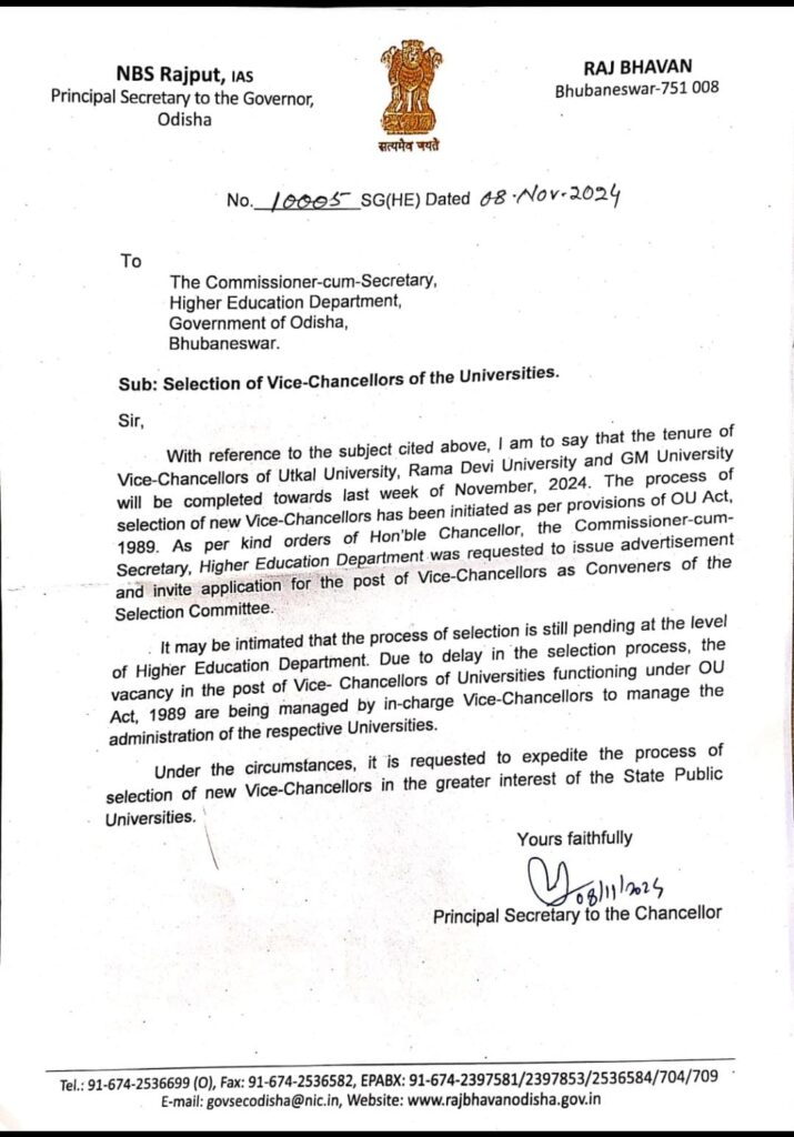 ବାସ୍ତବ ବ୍ୟୁରୋ: ଚଳିତ ମାସରେ ଓଡ଼ିଶାର ତିନି ବିଶ୍ୱ ବିଦ୍ୟାଳୟର କୁଳପତିମାନଙ୍କ କାର୍ଯ୍ୟକାଳ ଶେଷ ହେଉଛି । ଉତ୍କଳ ବିଶ୍ୱ ବିଦ୍ୟାଳୟ, ରମାଦେବୀ ଦେବୀ ବିଶ୍ୱ ବିଦ୍ୟାଳୟ ଓ ଗଙ୍ଗାଧର ମେହେର ବିଶ୍ୱ ବିଦ୍ୟାଳୟର କୁଳପତିଙ୍କ ସରିବ କାର୍ଯ୍ୟକାଳ । ଓଡ଼ିଶା ୟୁନିଭରସିଟି ଆକ୍ଟ ୧୯୮୯ ଅନୁଯାୟୀ କୁଳପତି ନିଯୁକ୍ତି ପାଇଁ ବିଜ୍ଞପ୍ତି ଜାରି କରିବା ପାଇଁ ରାଜ୍ୟପାଳଙ୍କ କାର୍ଯ୍ୟାଳୟ ଦ୍ୱାରା ଉଚ୍ଚ ଶିକ୍ଷା ବିଭଗ ସଚିବଙ୍କୁ ଚିଠି କରାଯାଇଛି ।