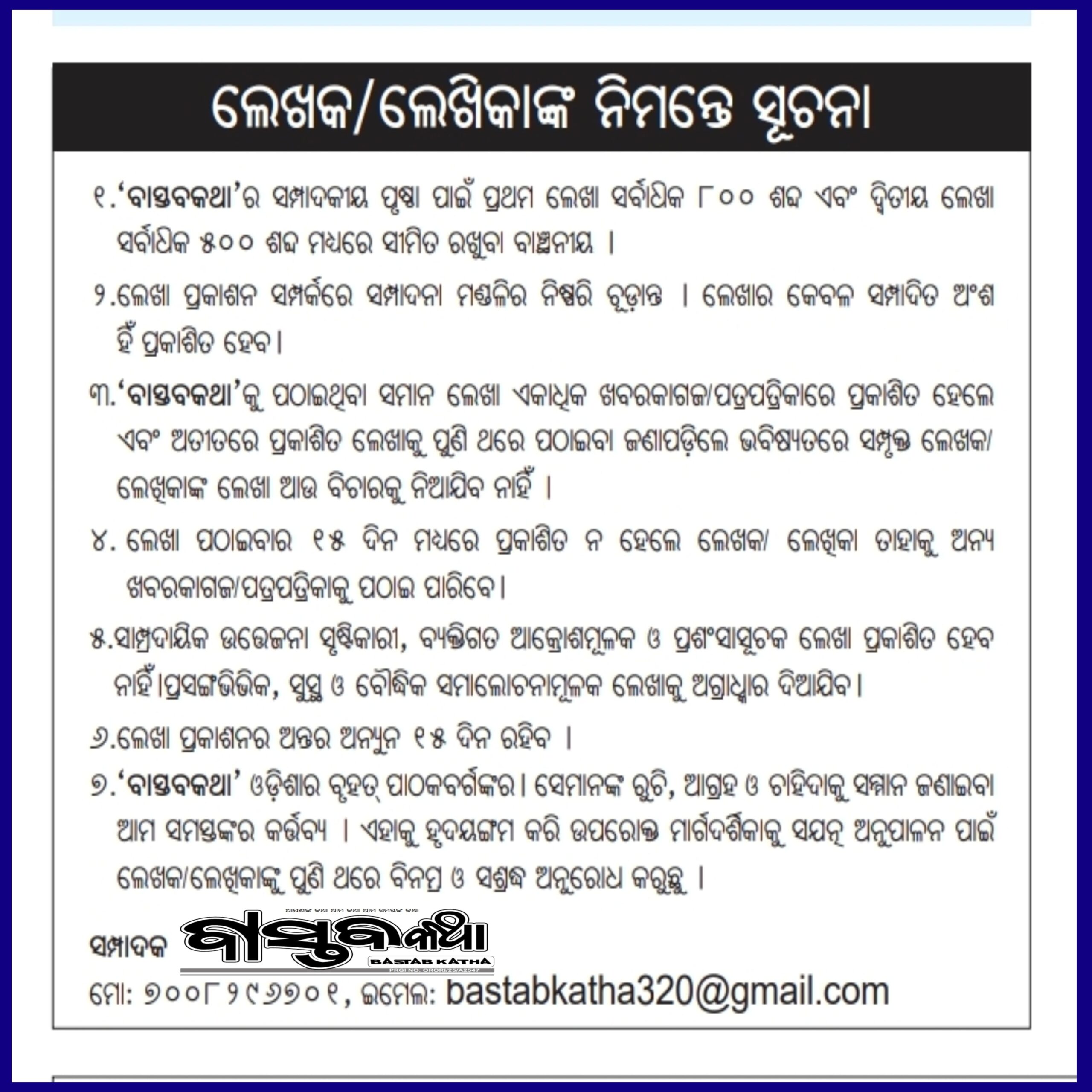 ଆଜି ବୈଶାଖ ମାସ କୃଷ୍ଣ ପକ୍ଷ ଦଶମୀ ତିଥି। ସୂର୍ଯ୍ୟୋଦୟ ସକାଳ ୫ଟା ୩୧ ମିନିଟରେ, ସୂର୍ଯ୍ୟାସ୍ତ ସନ୍ଧ୍ୟା ୬ଟା ୦୪ ମିନିଟ। ଶୁଭ ବେଳା ବା ଅମୃତ ବେଳା ଦିବା ୭ଟା ୦୯ ମିନିଟରୁ ୯ଟା ୪୬ ମିନିଟ ମଧ୍ୟରେ ରହିବ। ରାହୁକାଳ ଅପରାହ୍ନ ୪ଟା ୩୦ ମିନିଟରୁ ସନ୍ଧ୍ୟା ୬ଟା ପର୍ଯ୍ୟନ୍ତ ରହିବ, ଶୁଭ କାର୍ଯ୍ୟ ବର୍ଜନୀୟ