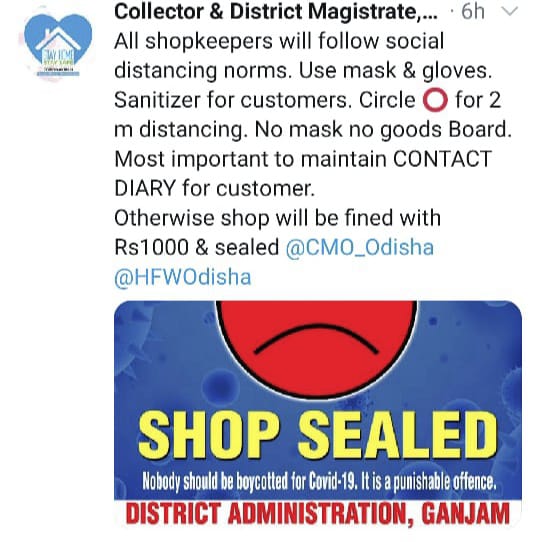 ନିର୍ଦ୍ଦେଶନାମାରେ ସେ କହିଛନ୍ତି ଯେ, ଦେକାନ ମାଲିକ ଗ୍ରାହକଙ୍କ ପାଇଁ ସାନିଟାଇଜର ରଖିବେ । ସେହିଭଳି ଦୋକାନ ଆଗରେ ମାସ୍କ ନାହିଁ ତ ସଉଦା ନାହିଁ ଲେଖିବେ । ସାମାଜିକ ଦୂରତ୍ୱ ମାନି ମୁହଁରେ ମାସ୍କ ପିନ୍ଧିବେ ଓ ହାତରେ ଗ୍ଲୋଭସ ପିନ୍ଧିବେ । ସେହିପରି ଗ୍ରାହକମାନେ ଦୋକାନ ଆଗରେ ଦିଆଯାଇଥିବା ଗୋଲାକାର ଚିହ୍ନରେ ଧାଡ଼ିରେ ରହି ସଉଦା କିଣିବେ ।