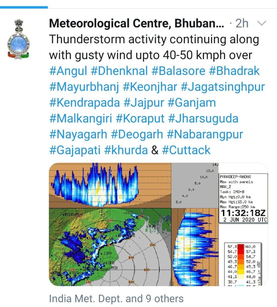 ସେହିଭଳି ପଞ୍ଜାବ ଉତ୍ତର ହରିୟାଣା, କର୍ଣ୍ଣାଟକ, ଗୋଆ, ମଧ୍ୟ ମହାରାଷ୍ଟ୍ର ଏବଂ ପଶ୍ଚିମ ମଧ୍ୟପ୍ରଦେଶ ରେ ଆଗାମୀ ୨ଦିନ ପର୍ଯ୍ୟନ୍ତ ବର୍ଷା, ବଜ୍ରପାତ ଏବଂ କାଳବୈଶାଖୀ ର ବିପଦ ଥିବାବେଳେ ତେଲେଙ୍ଗାନା, ବିଦର୍ଭ, ସିକିମ୍, ଓଡ଼ିଶା, ବିହାର, ଆସାମ ଏବଂ ମେଘାଳୟ, ନାଗାଲାଣ୍ଡ, ମଣିପୁର, ମିଜୋରାମ, ପୁଡୁଚେରୀ, ତାମିଲନାଡୁ, ଛତିଶଗଡ଼, ଝାଡ଼ଖଣ୍ଡ, ଅରୁଣାଚଳପ୍ରଦେଶ, ଆଣ୍ଡାମାନ ଓ ନିକୋବର ଆଇଲାଣ୍ଡ ଭଳି ସ୍ଥାନରେ ଝଡ଼ବର୍ଷାର ସମ୍ଭାବନା ରହିଛି ।