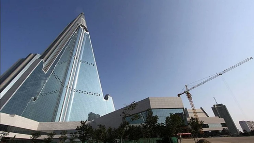 ଏହି କୋଠାର ନିର୍ମାଣ କାର୍ଯ୍ୟ ୧୯୮୭ ମସିହାରେ ଆରମ୍ଭ ହୋଇଥିଲା | ବିସିସିଆଇ ଅନୁଯାୟୀ, ଦୁଇ ବର୍ଷ ମଧ୍ୟରେ ହୋଟେଲର କାର୍ଯ୍ୟ ଶେଷହେବ ବୋଲି ଆଶା କରାଯାଉଥିଲା। କିନ୍ତୁ ଏହା ହୋଇପାରିଲା ନାହିଁ | ବେଳେବେଳେ ଏହାକୁ ତିଆରି କରିବାର ଉପାୟରେ କିଛି ଅସୁବିଧା ହେଉଥିଲା ତ ବେଳେବେଳେ ନିର୍ମାଣ ସାମଗ୍ରୀରେ ସମସ୍ୟା ଦେଖାଦେଇଥିଲା | ଶେଷରେ ଏହି ହୋଟେଲର ନିର୍ମାଣ କାର୍ଯ୍ୟ ୧୯୯୨ ମସିହାରେ ବନ୍ଦ କରିବାକୁ ପଡିଲା | କାରଣ ସେତେବେଳେ ଉତ୍ତର କୋରିଆ ଆର୍ଥିକ ଦୃଷ୍ଟିରୁ ଦୁର୍ବଳ ହୋଇଯାଇଥିଲା।